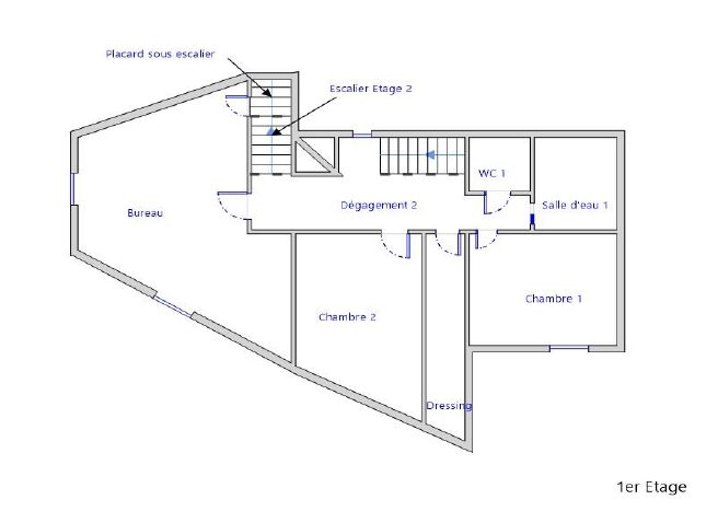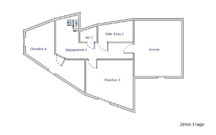 A l'étage : 3 chambres - une salle d'eau - toilettes - espace rangement dressing