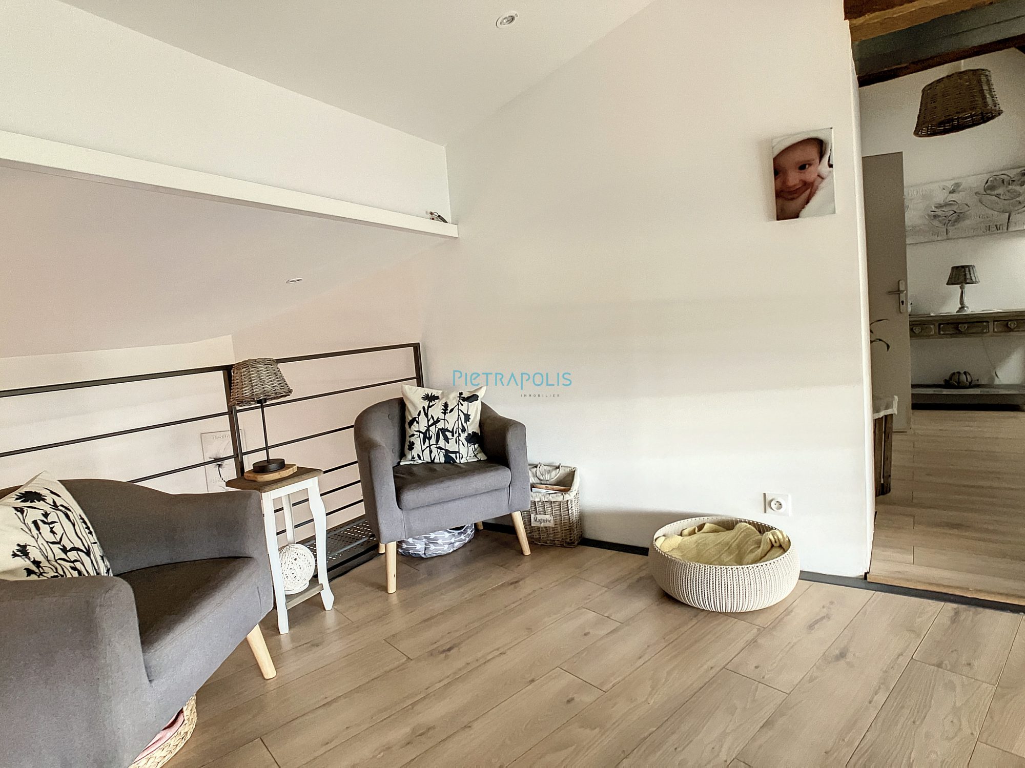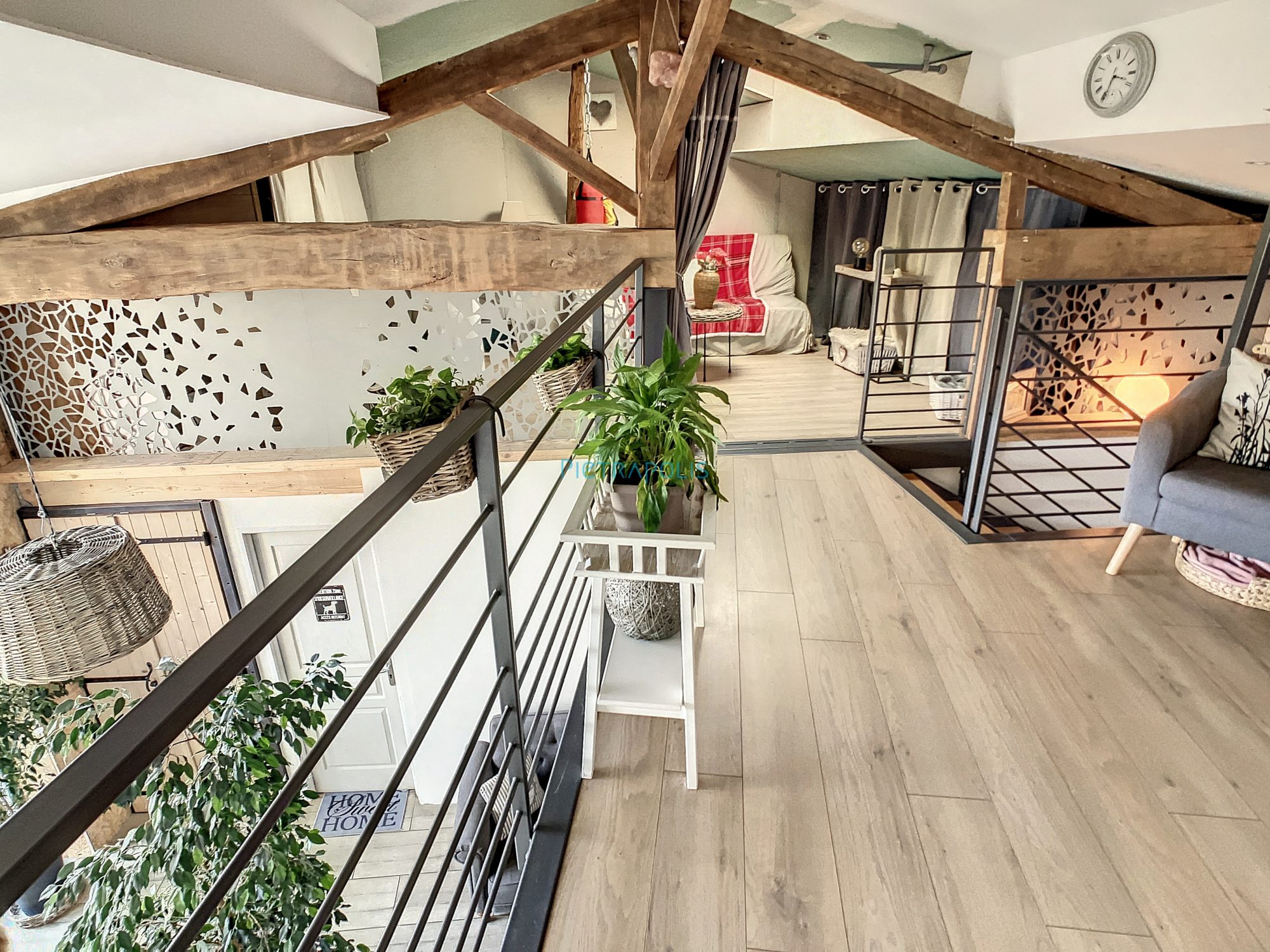 A l'étage, la mezzanine dessert un coin nuit d'appoint pouvant devenir chambre - un dégagement ayant actuellement la fonction de bureau - 1 chambre de 19m2 - 1 chambre de 17m2 avec accès à une terrasse-solarium.