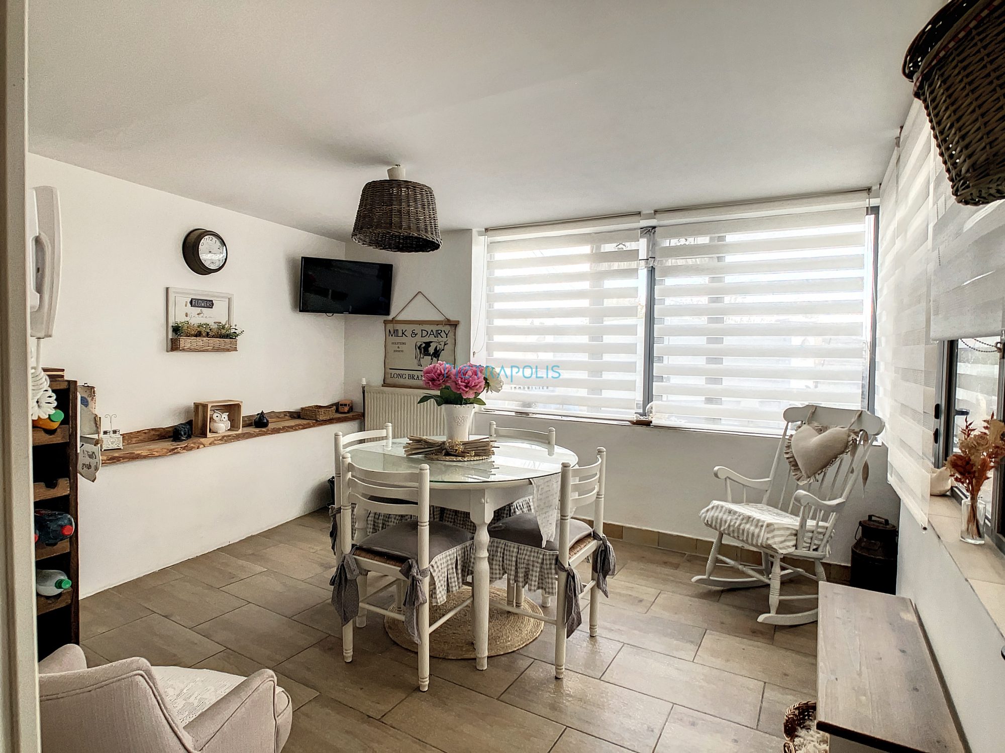 Salon - salle à manger cuisine aménagée associée à l'espace dinatoire avec sortie vers le jardin et la terrasse.