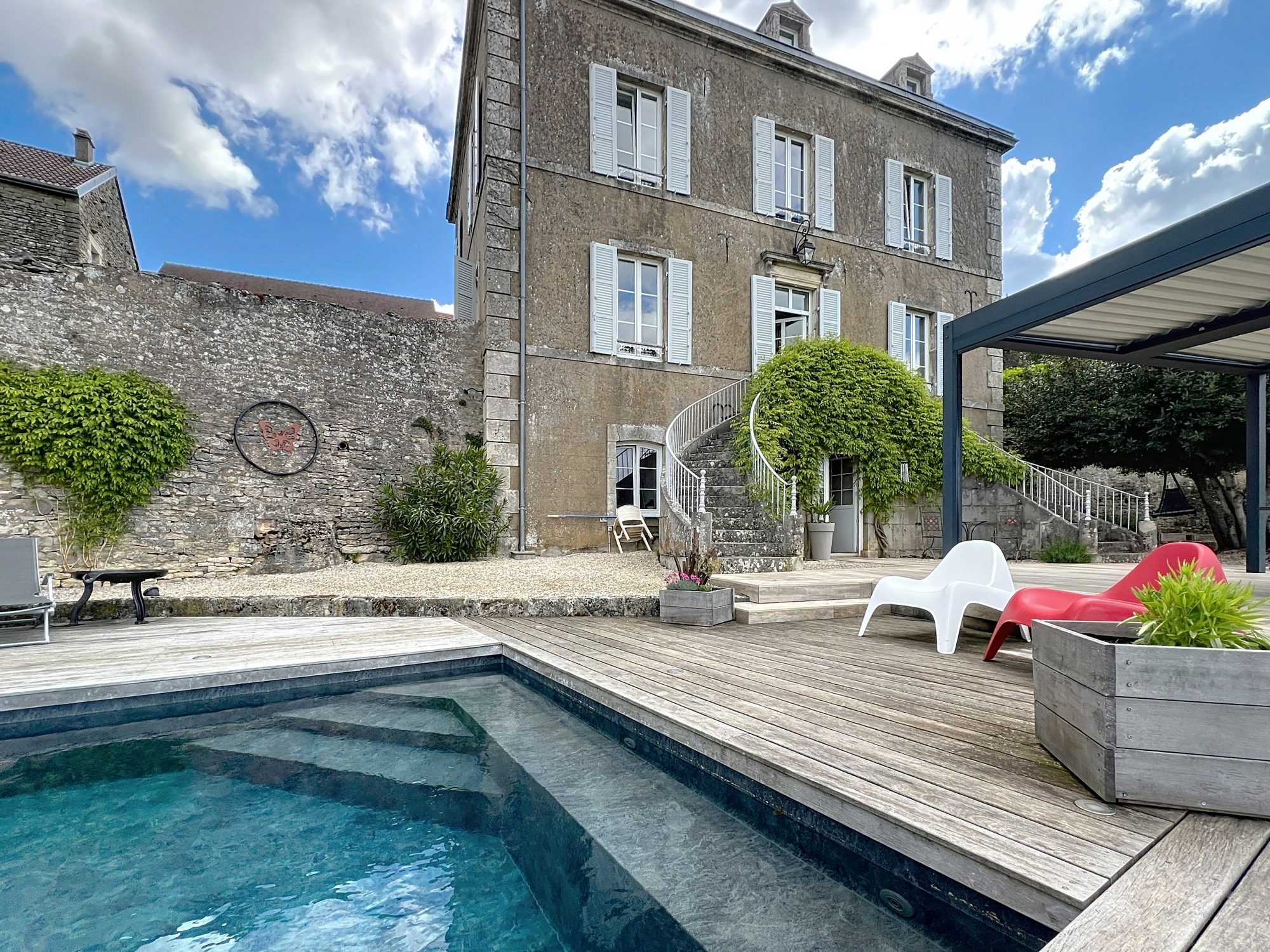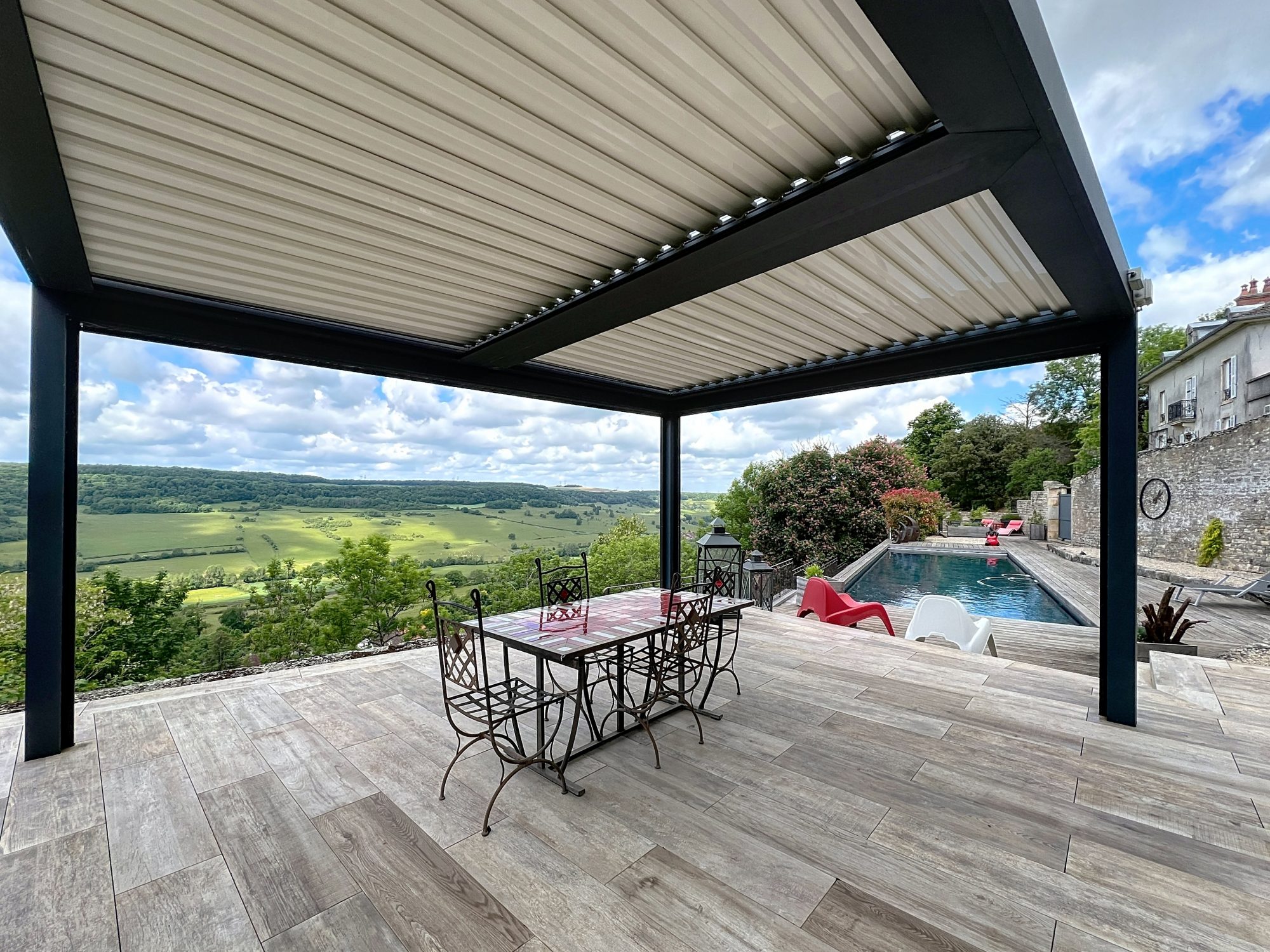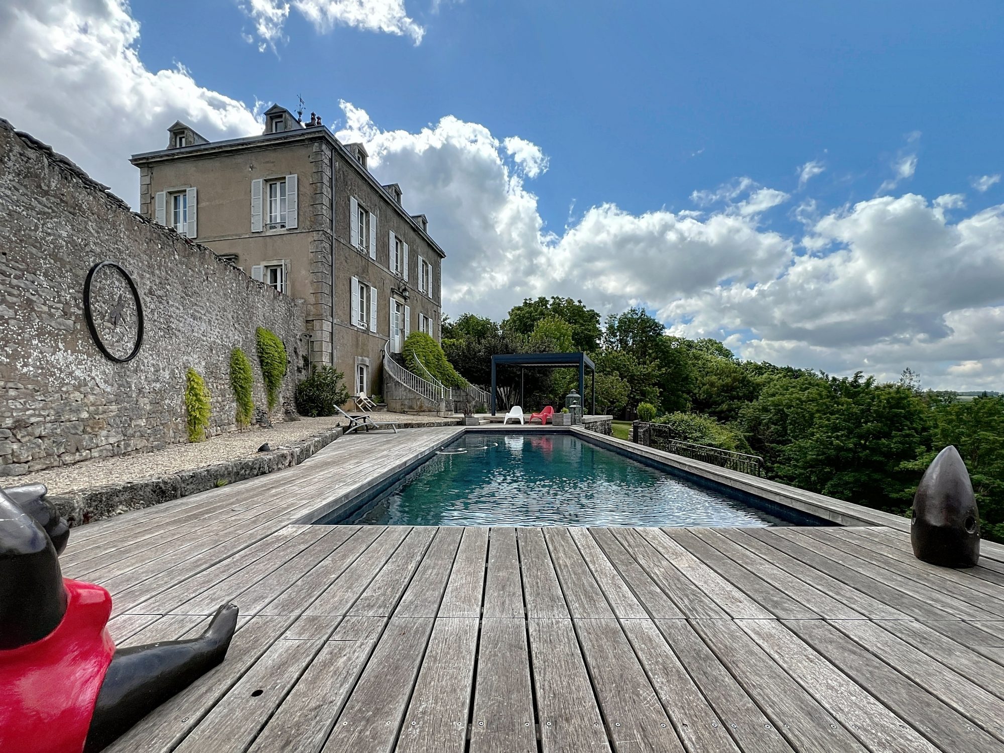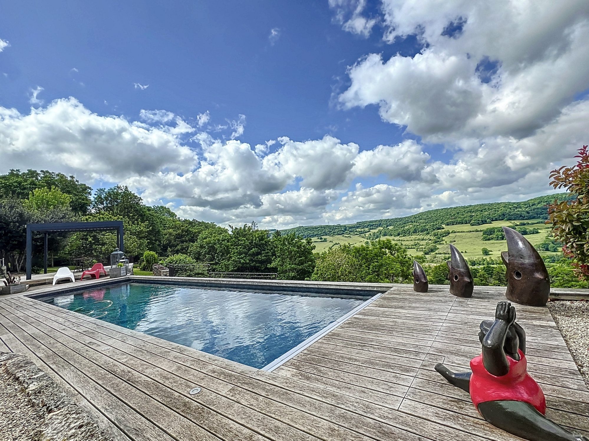 Vous profiterez d'un accès sur un grand jardin de plus de 1 800 m2 arboré entièrement clos avec vue imprenable, d'une terrasse avec pergola bioclimatique et d'une grande piscine chauffée.