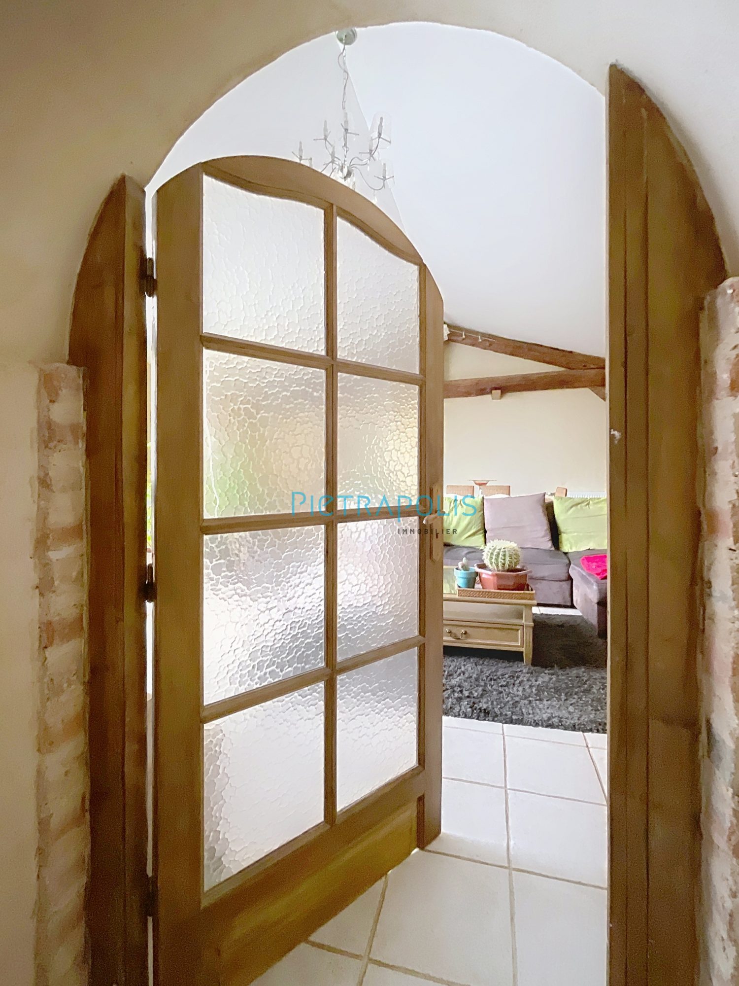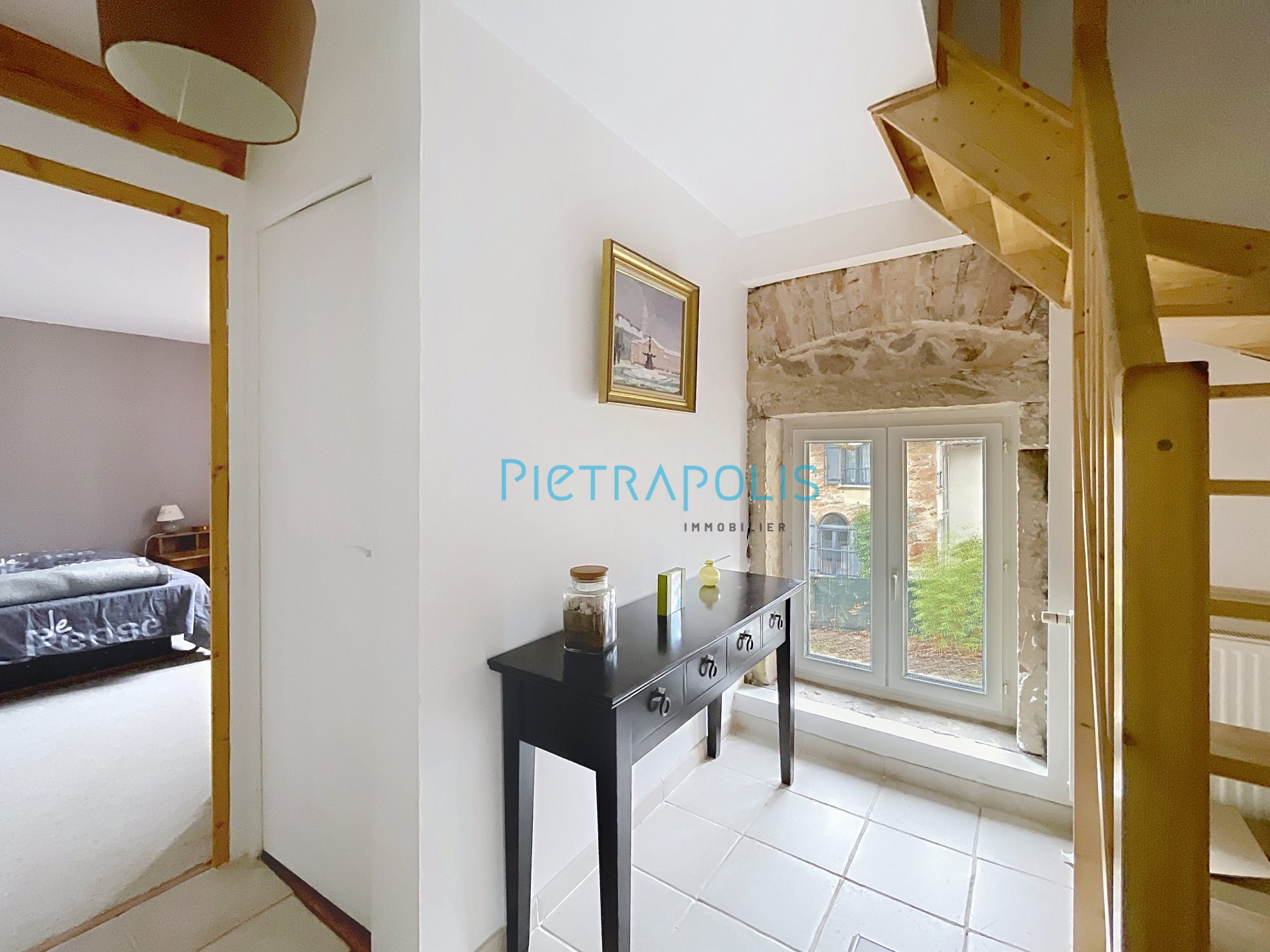 Une communication directe avec la maison en pierres donne l'accès à un vaste séjour en pierres de 47 m2 , puis deux chambres, un wc et une salle d'eau ainsi qu'une mezzanine aménagée en pièce de jeux ou autre.