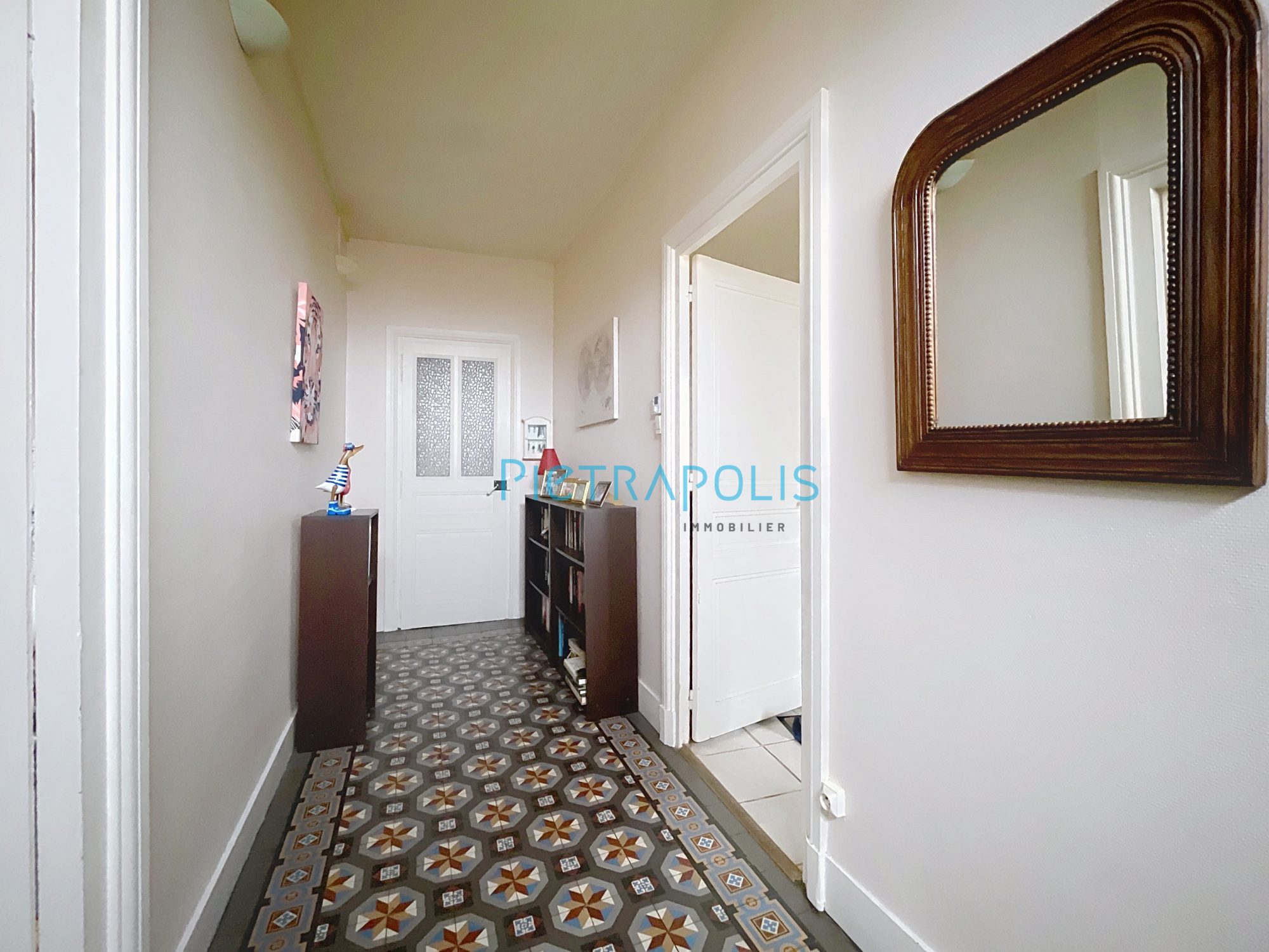 cette maison offre actuellement une entrée avec ses carreaux de ciment, un salon de 20 m2 qu'il est possible d’agrandir sans difficulté et sa cheminée qui apporte du caractère sur ce coin cosy, une cuisine avec un coin cellier,