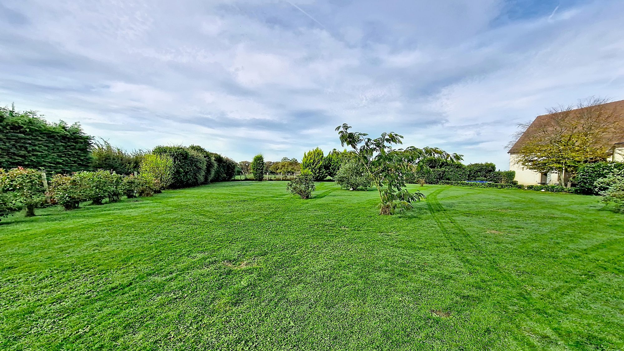 Vue dégagée sur le jardin sans vis-à-vis et sur les prés environnants.