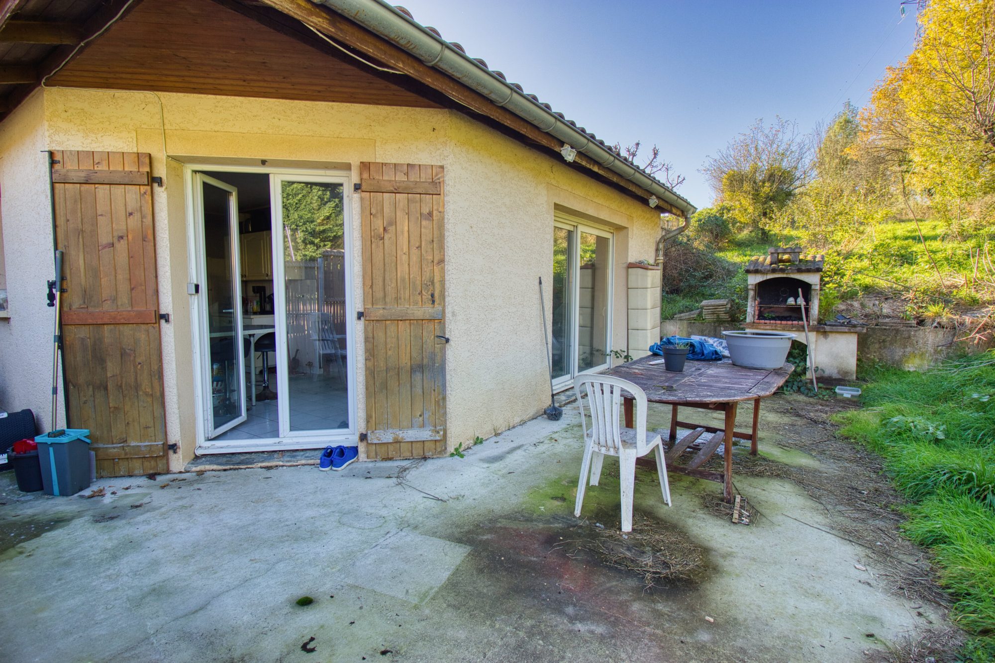 Elle dispose d’une terrasse d’environ 40 m², d’une pompe à chaleur récente, et d’un grand terrain arboré de près de 2500 m² avec verger et espace barbecue.