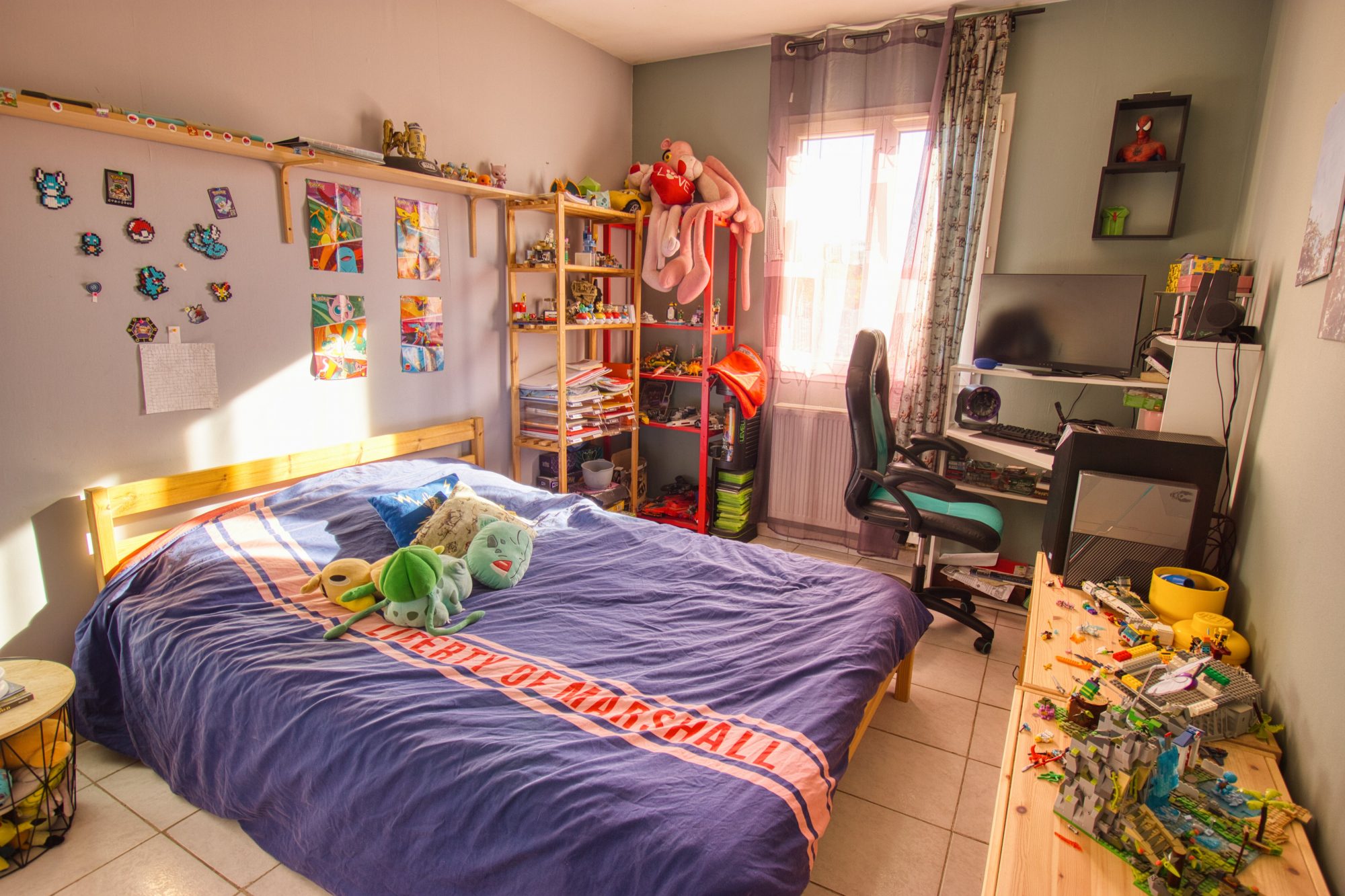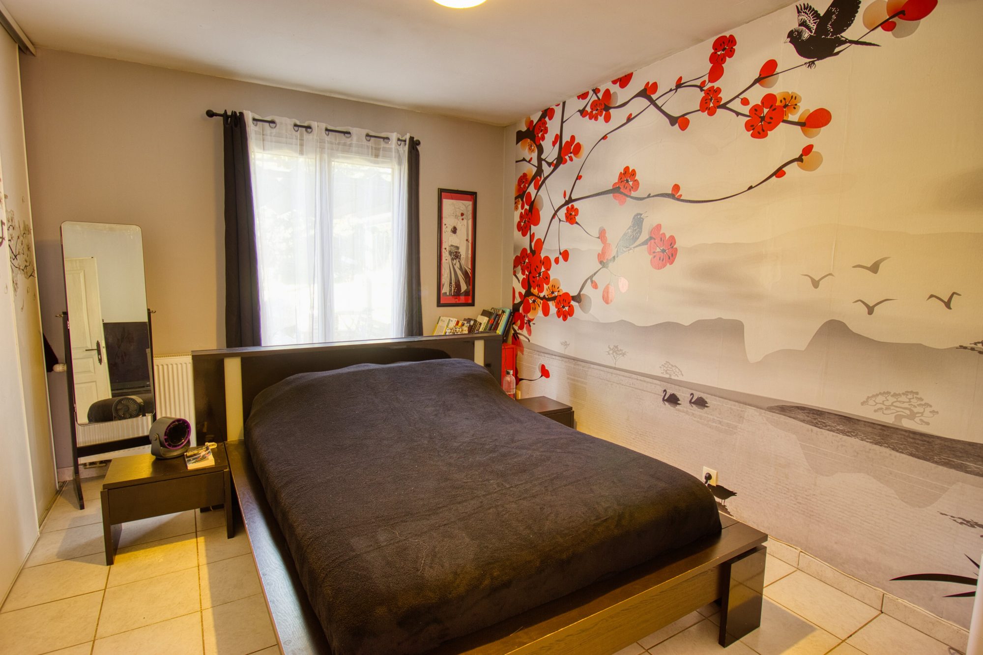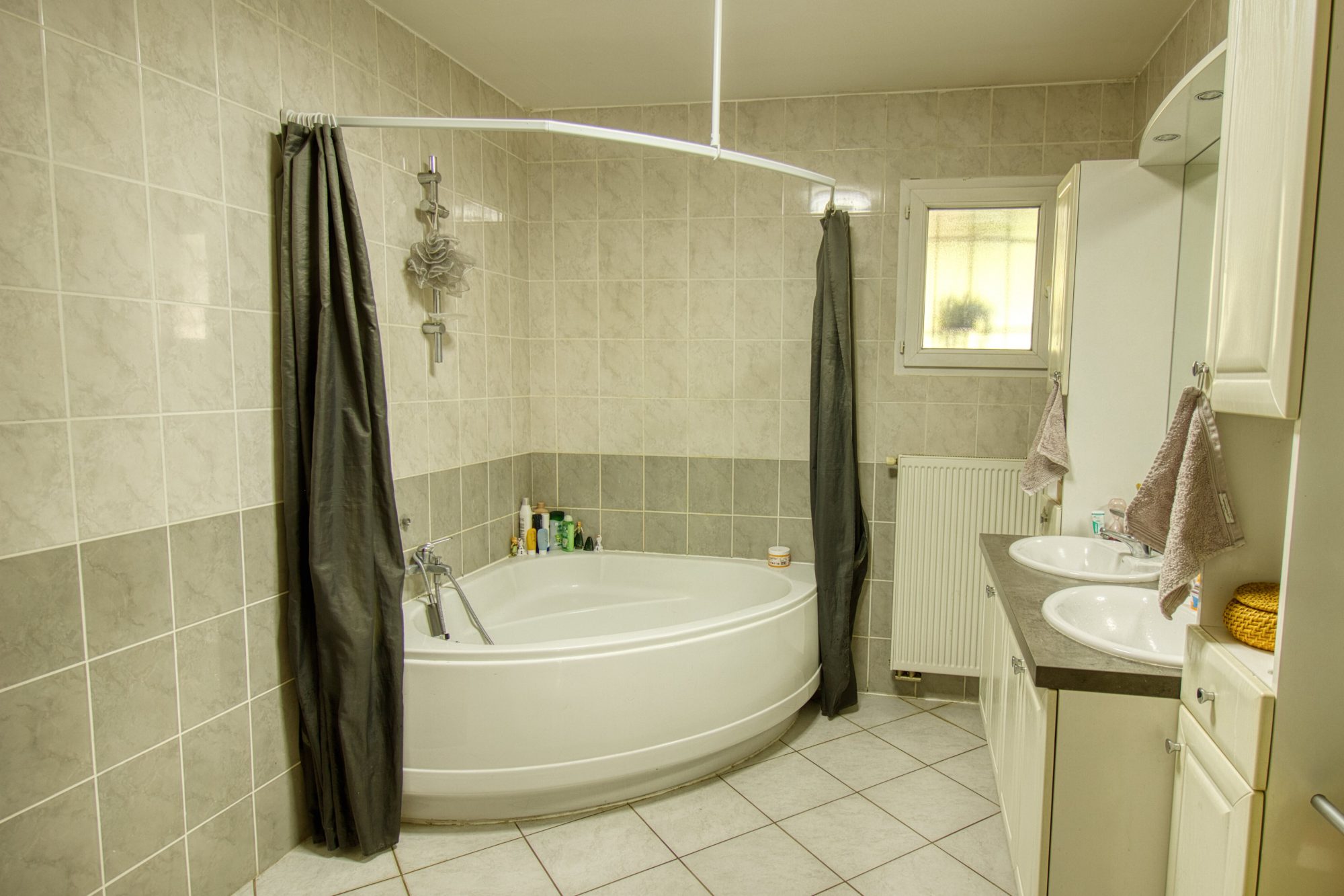 Elle comprend également une suite parentale avec salle d’eau, trois chambres avec placards, une salle de bain avec baignoire d’angle, et un garage attenant.