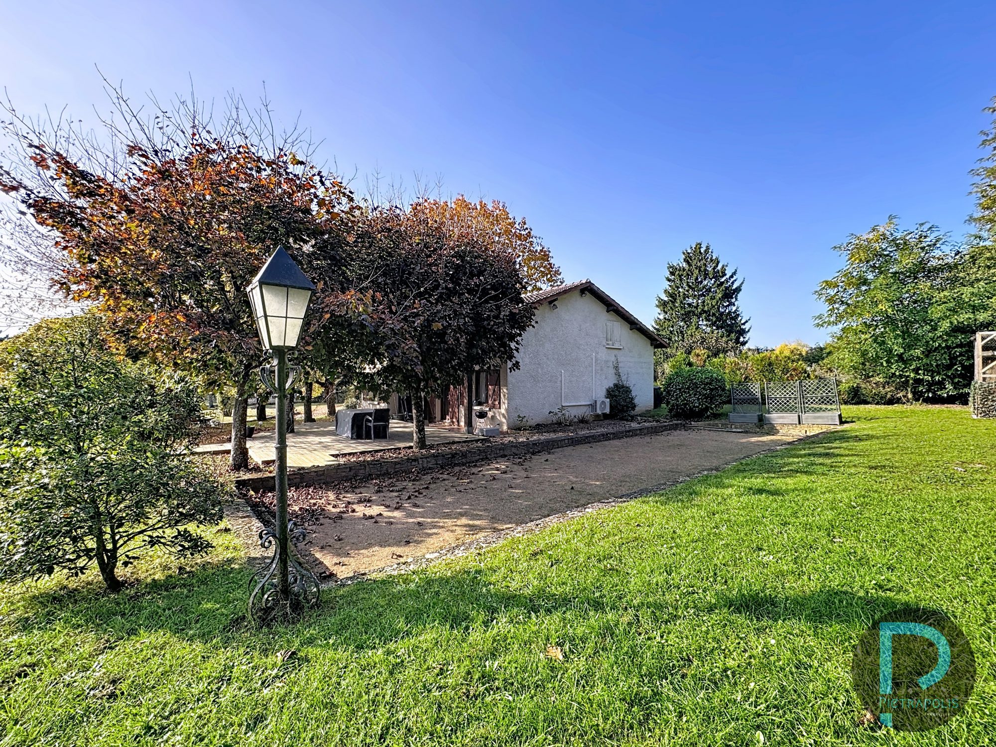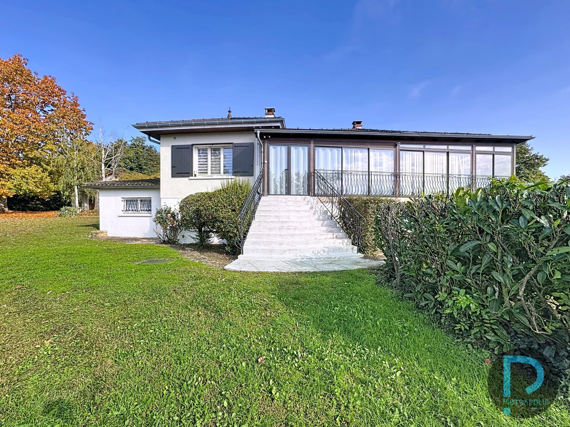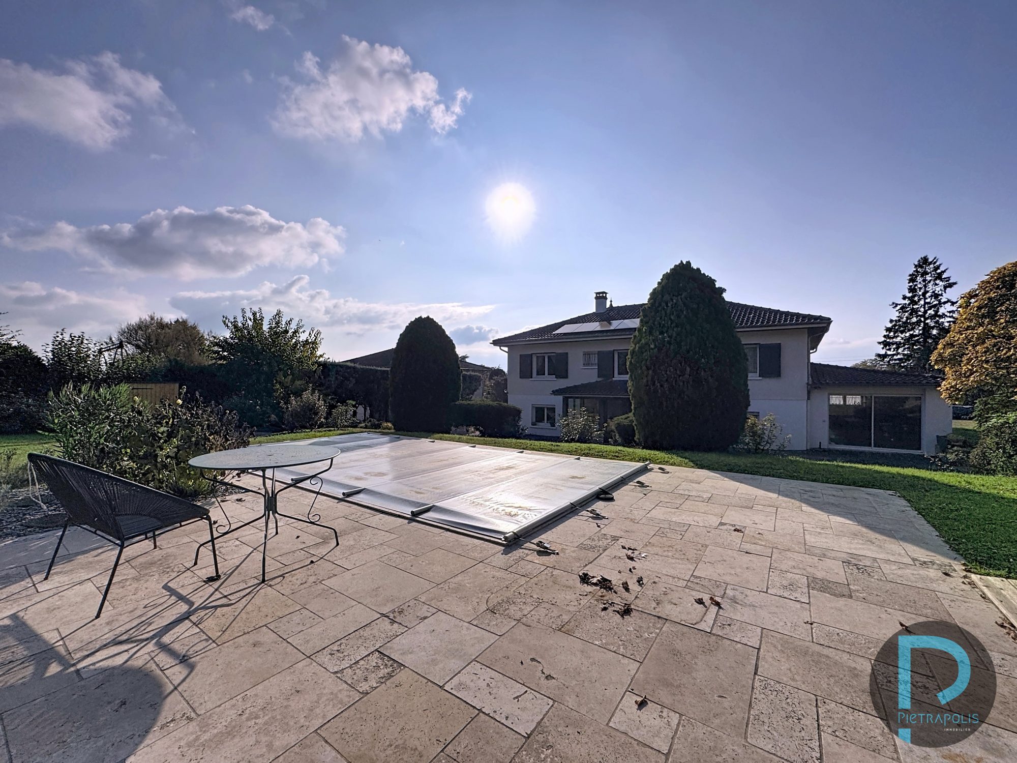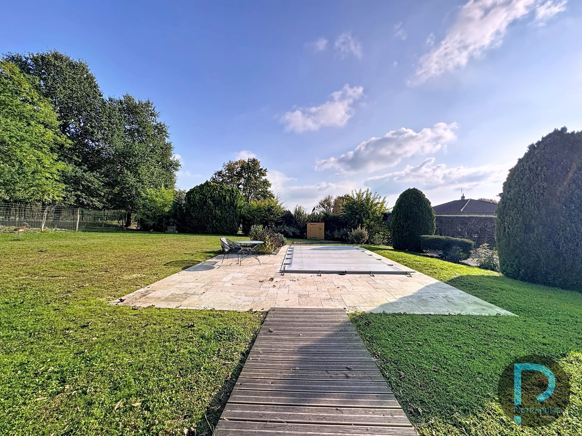 Extérieurs: Le terrain de plus de 8 000 m² offre une piscine également, sans vis-à-vis, agrémenté d’espaces verts, d’arbres matures et d’un vaste potentiel d’aménagement.