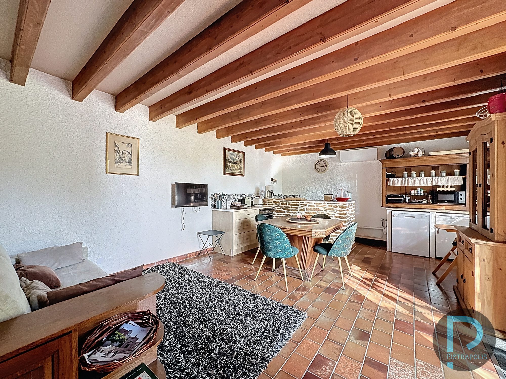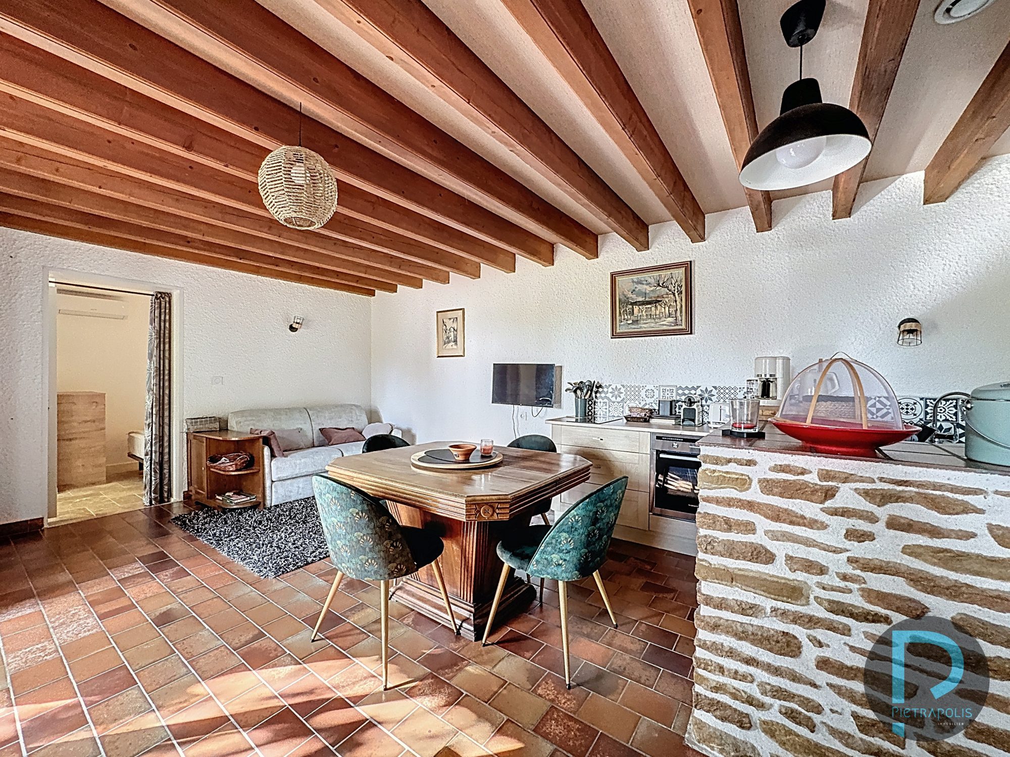 Belle pièce de vie avec cuisine équipée ouverte, une chambre confortable, une salle de douche moderne. Parfaite pour accueillir de la famille, héberger des amis ou générer un revenu locatif (gîte, location saisonnière, logement d’appoint).