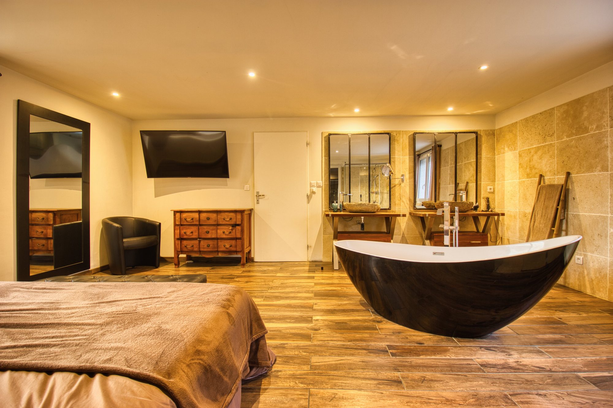 Au rez-de-chaussée, la cuisine ouverte, aménagée et équipée, est l’une de ces pièces où se fabriquent les habitudes et les confidences, entre un café du matin et un dîner improvisé. La suite parentale offre un premier refuge, intime et confortable, comme un havre réservé aux instants de pause.