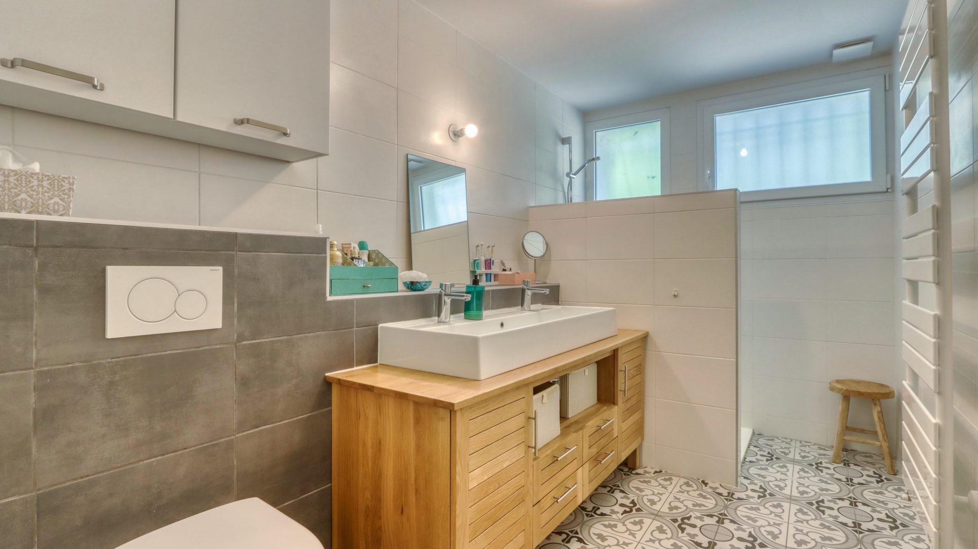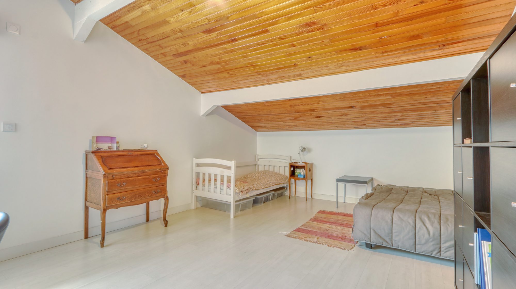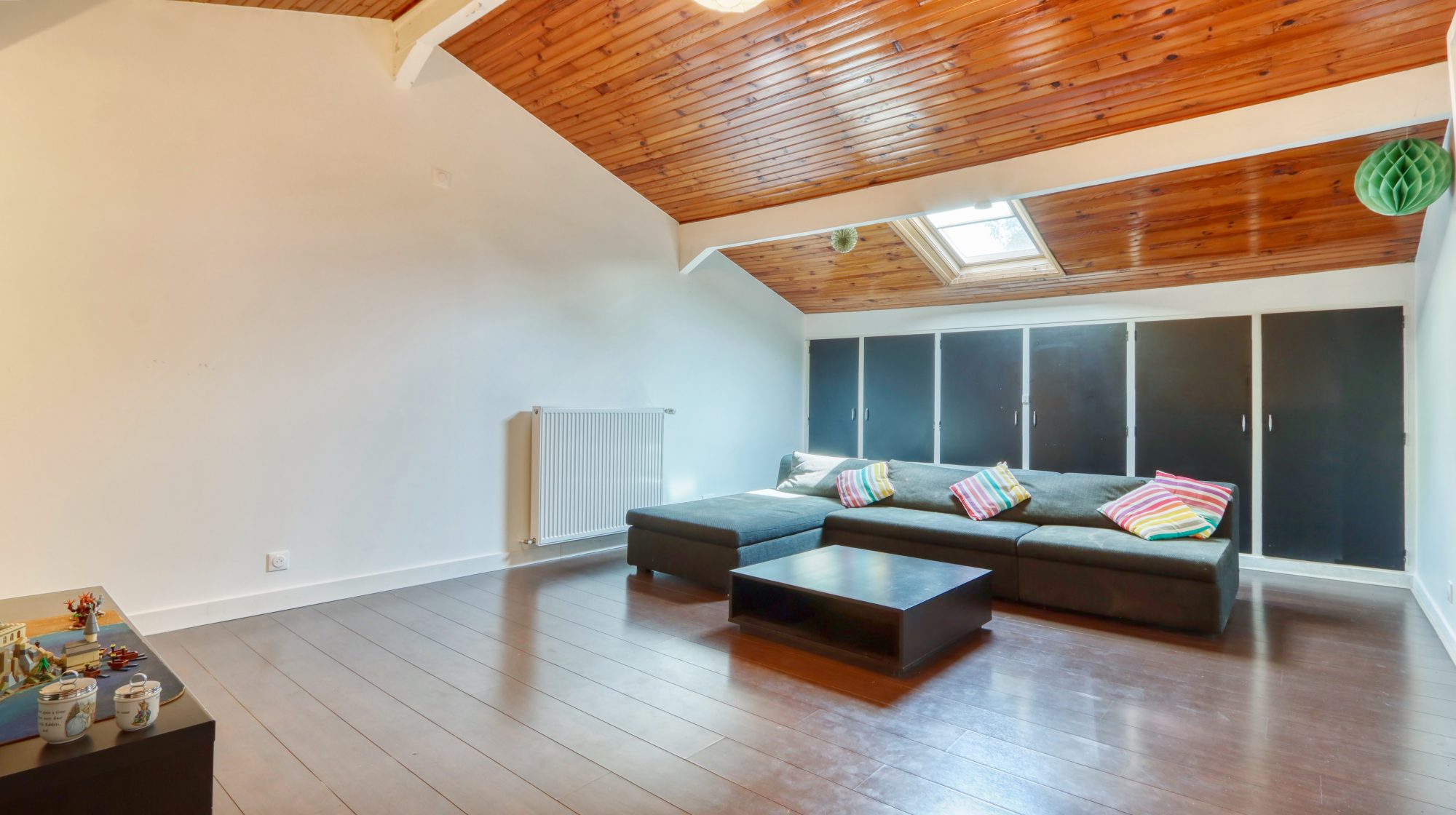 Le second niveau offre un grand espace de vie de 32 m², idéal pour un salon TV ou une salle de jeux, 2 grandes chambres et une salle d'eau entièrement rénovée avec WC.
