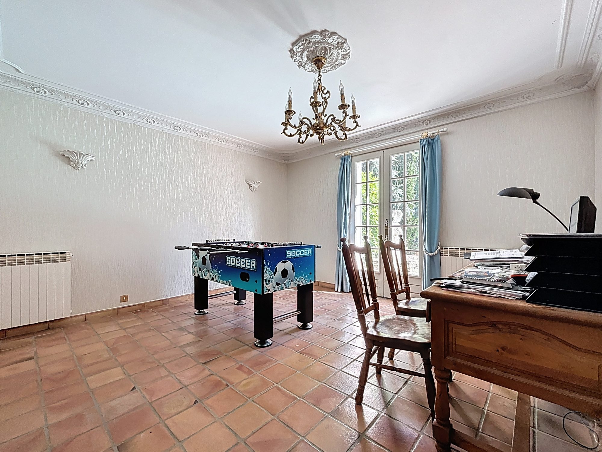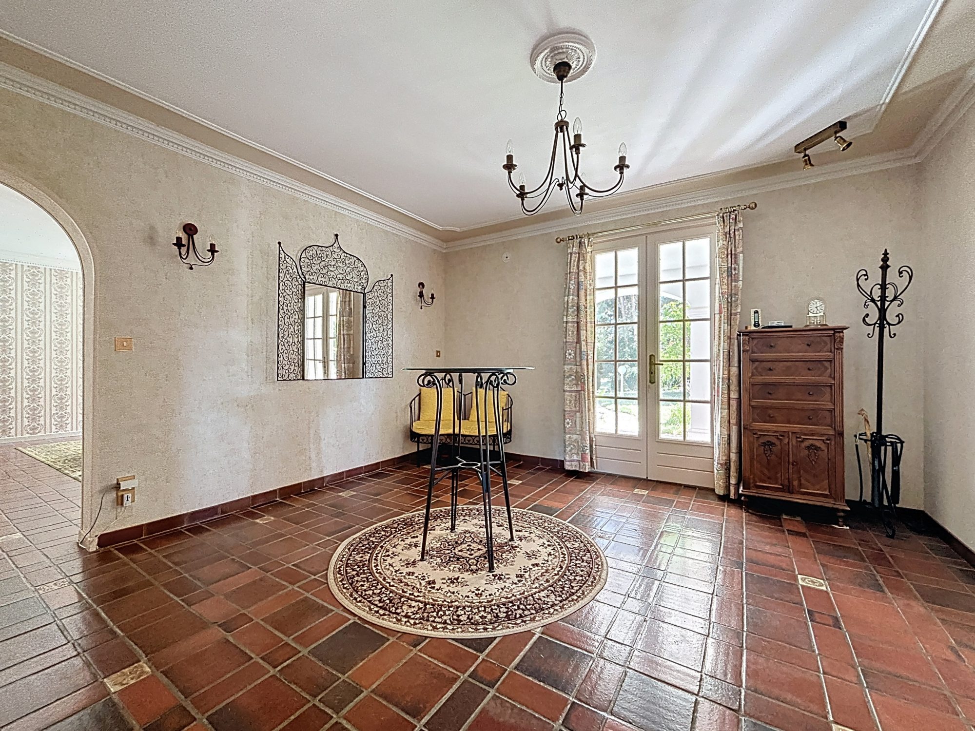 Cette construction bâtie entièrement en béton banché dans les années 80 et au caractère certain offre de très beaux volumes, au RDC vous profitez d'un grand hall d'entrée menant à un spacieux salon avec cheminée de 38 m² et son plafond cathédrale, une cuisine indépendante de 14,7 m² une salle a manger de plus de 22 m², une chambre parentale avec un point d'eau d'environ 38 m², son WC et bureau pouvant être aménagé en logement indépendant. Toutes les pièces disposent d'un accès direct au jardin.