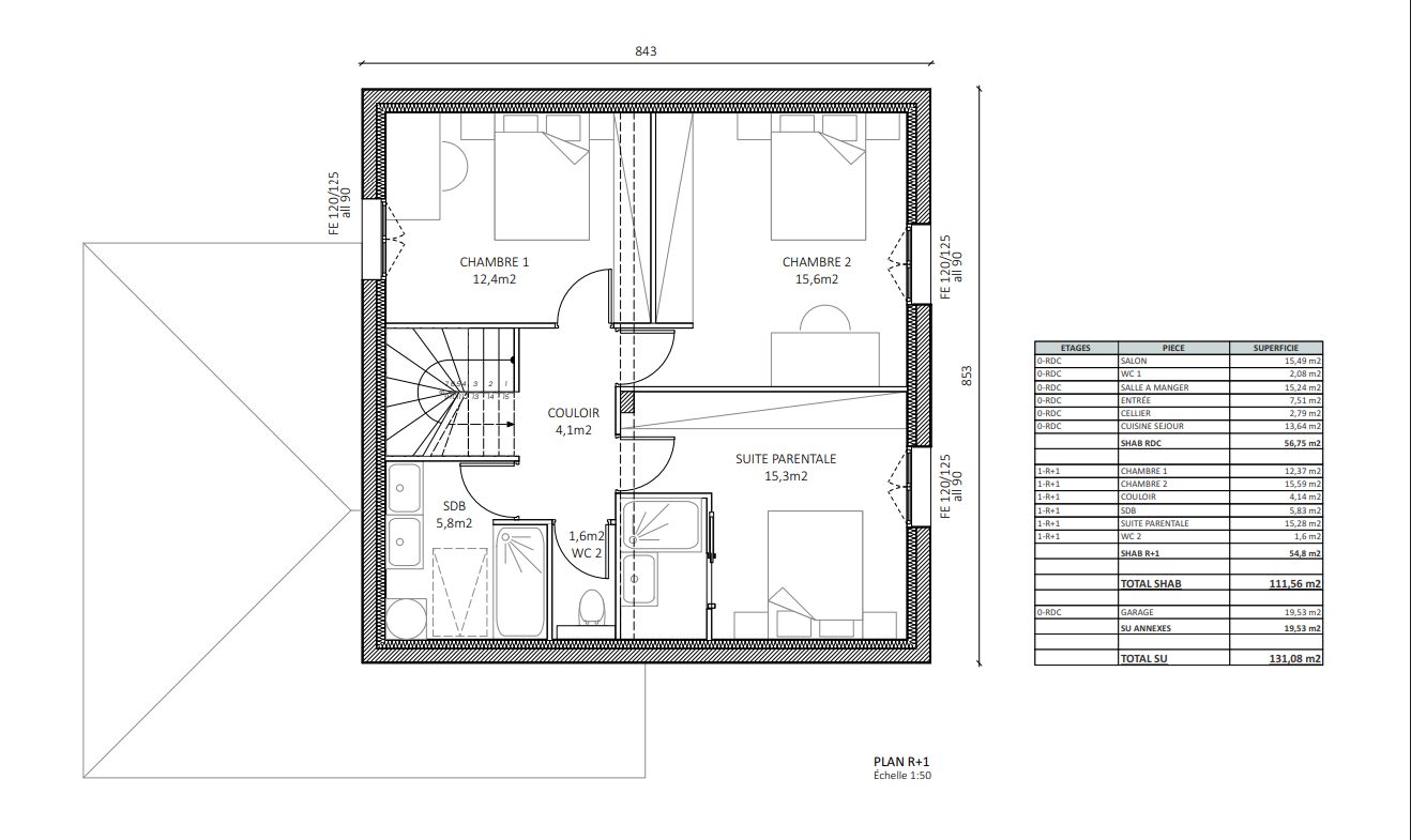 Maison de type T4 d'une surface aménagée d'environ 111 m² comprenant :